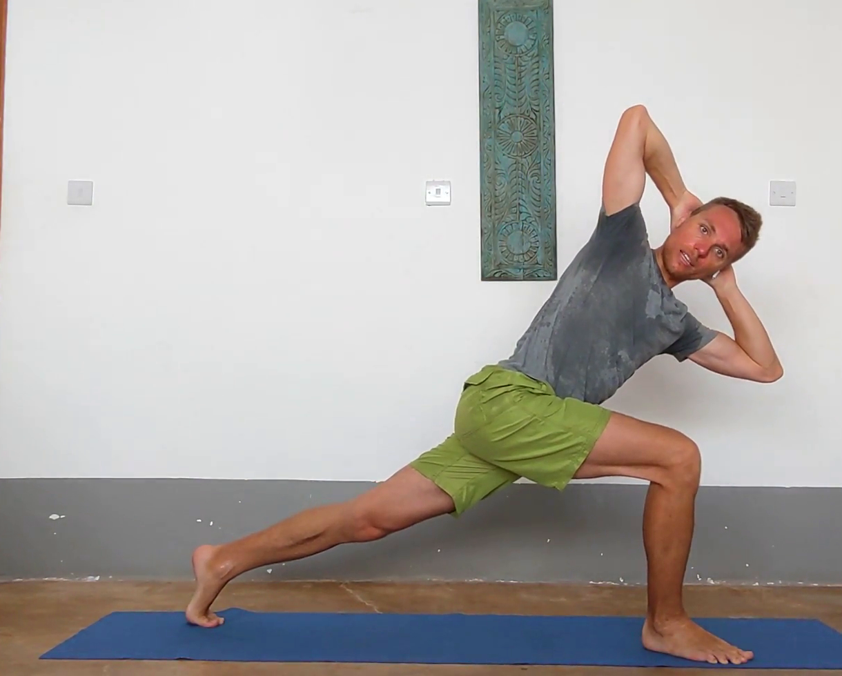 Rotace a kyčle aktivně, "workout styl", 35 minut. Není vhodné při problémech s kolenem. Není vhodné, pokud nedokážete sedět v sukhasaně na zemi bez pomůcek.