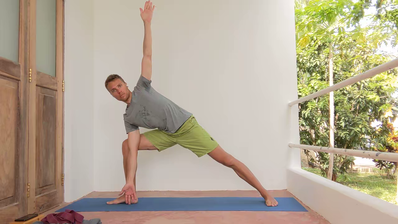 Zpevňování, zejména stran těla - čaturanga, vašisthásana, trikonásana s rukama v úrdhva hastásaně, vírabhadrásana III, obrácené